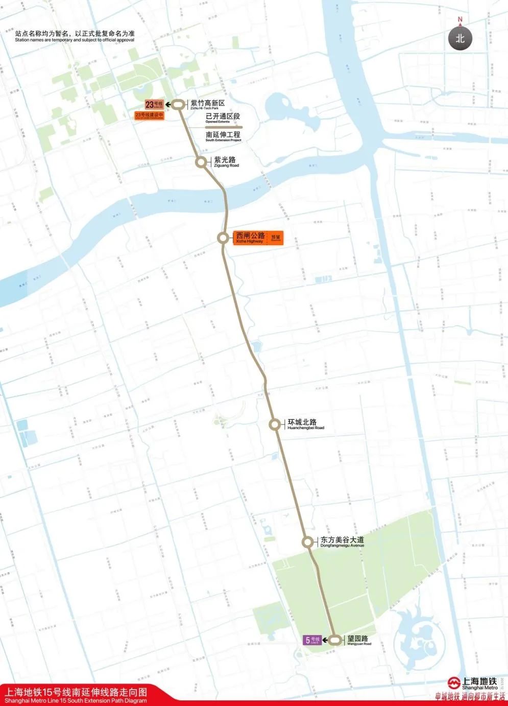 15号线(紫竹高新区站(不含)~望园路站区段)规划方案示意图