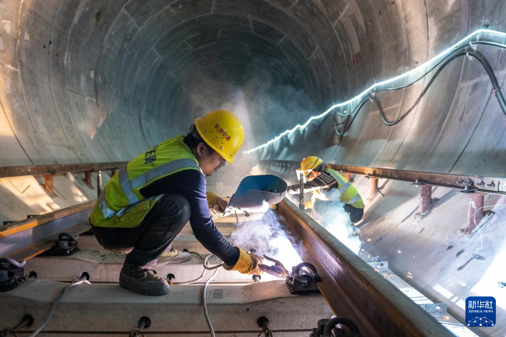 长沙地铁2号线西延段正在进行正线轨道铺设施工。项目建成后,将连通长沙南站与长沙西站,旅客坐地铁就能实现两座高铁站之间换乘。