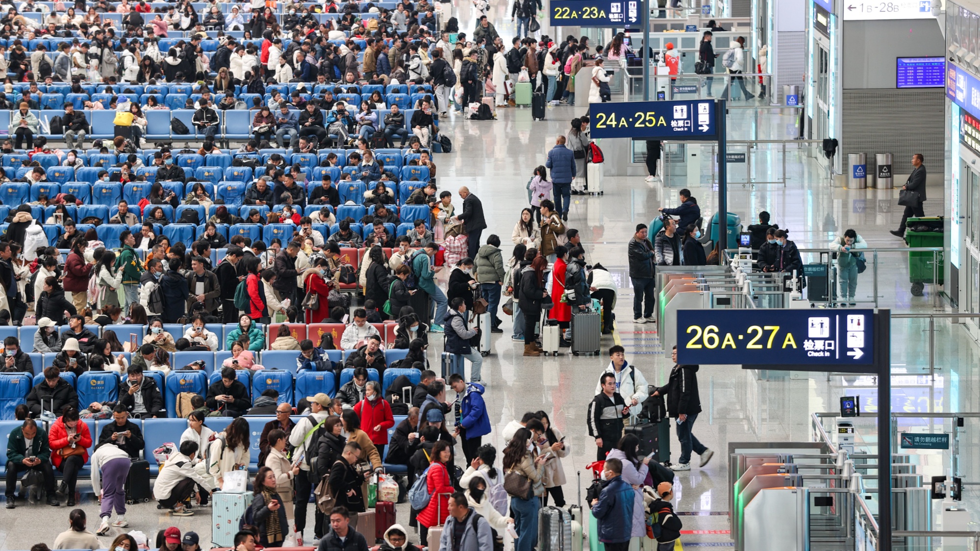 2024年1月3日,昆明,旅客乘坐高铁出行。
